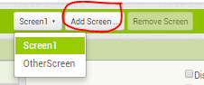 Next, we define our second screen by clicking “Add Screen…” and typing the name for our second screen “OtherScreen”. In this image, OtherScreen had already been created. By clicking on the “Screen1 v” button, we can select the already created screen from the dropdown list.